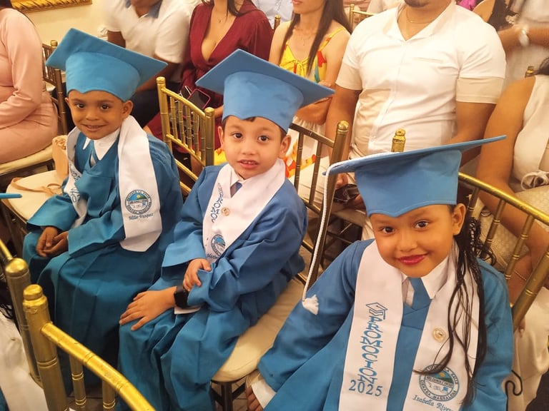 Nuestros pequeños graduandos, vestidos con sus hermosas togas azul celeste, iluminaron el recinto con su alegría y entusiasmo. Sus rostros reflejaban el orgullo de cerrar una etapa importante y el deseo de seguir creciendo en su camino educativo.