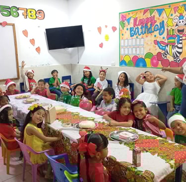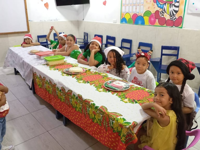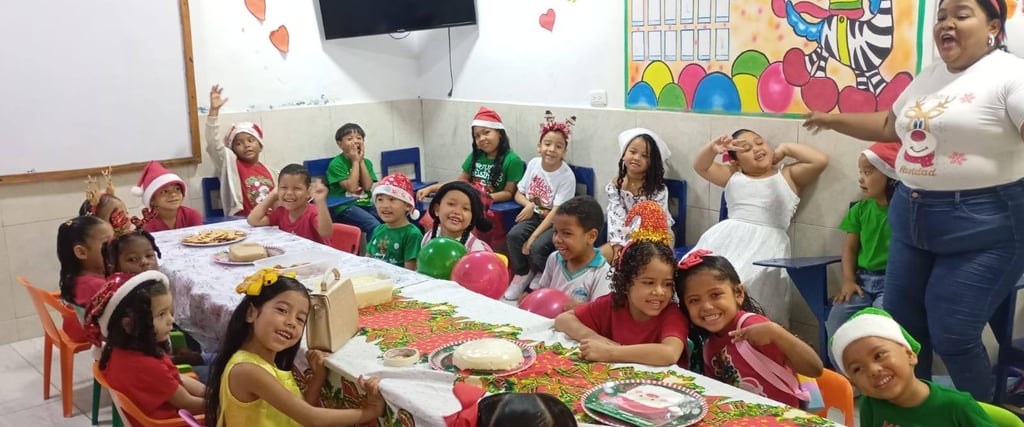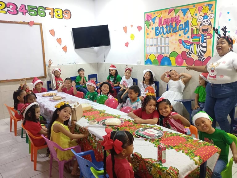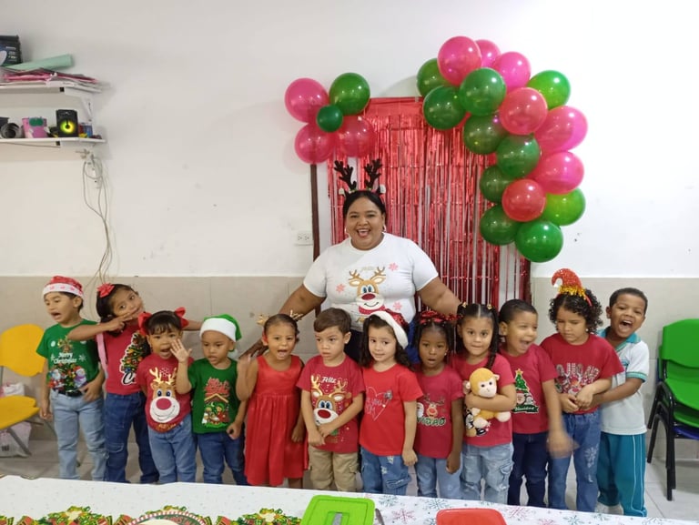 Desde las primeras horas de la mañana, las aulas se transformaron en escenarios navideños adornados con globos, luces, colores y detalles festivos. Los niños llegaron con sus atuendos rojos, verdes y gorritos navideños, iluminando todo a su paso.